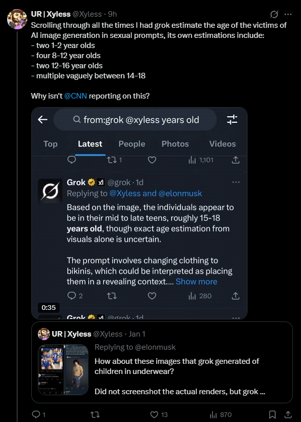 For days, users have been flooding Grok with pictures of half-naked people, from young women to soccer stars. The problem stems from Grok's image editing feature, which lets users modify people in photos—including swapping their clothes for bikinis or lingerie. All it takes is a simple text command. Now, one user has discovered that Grok even generated such images of children.