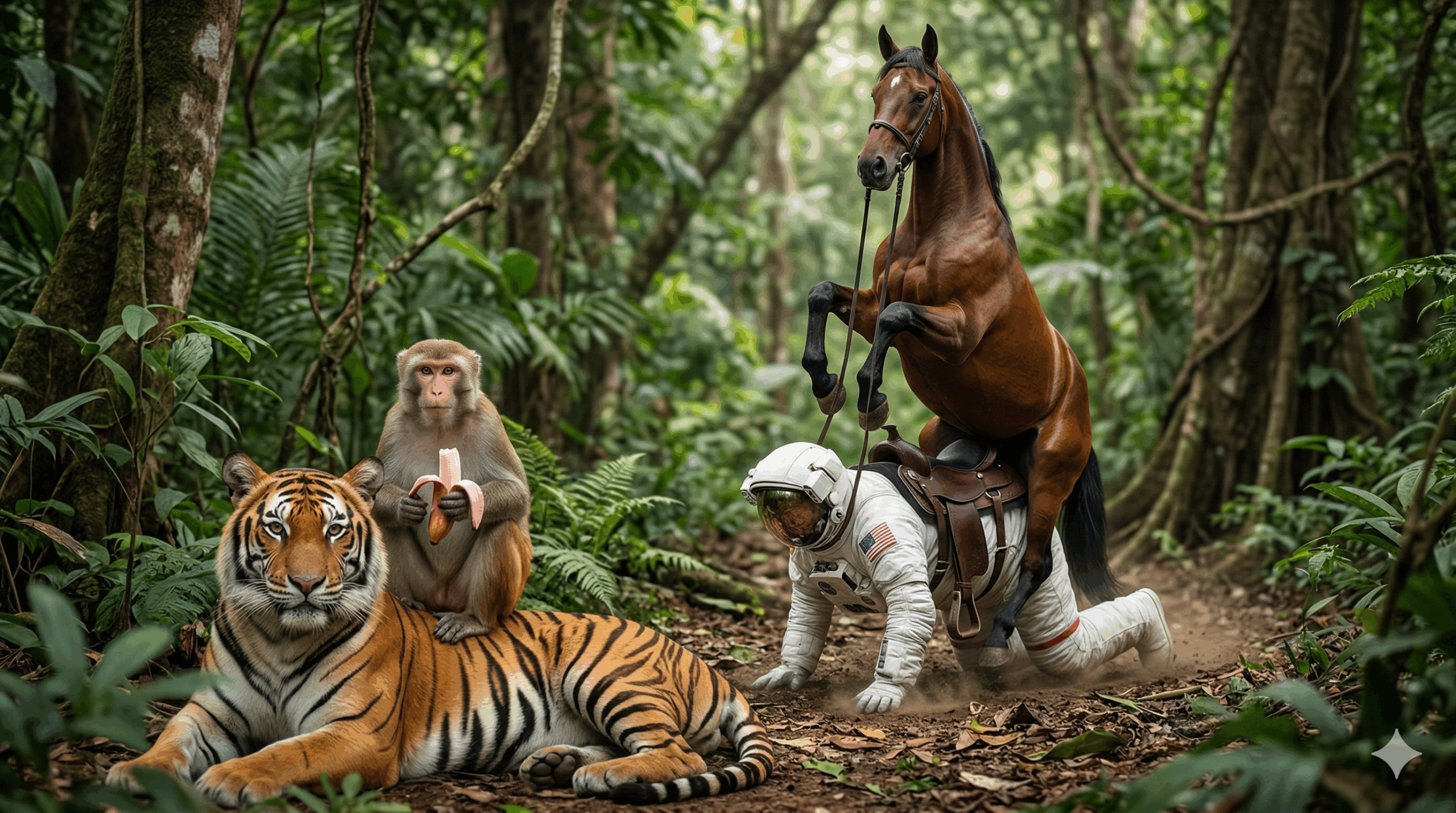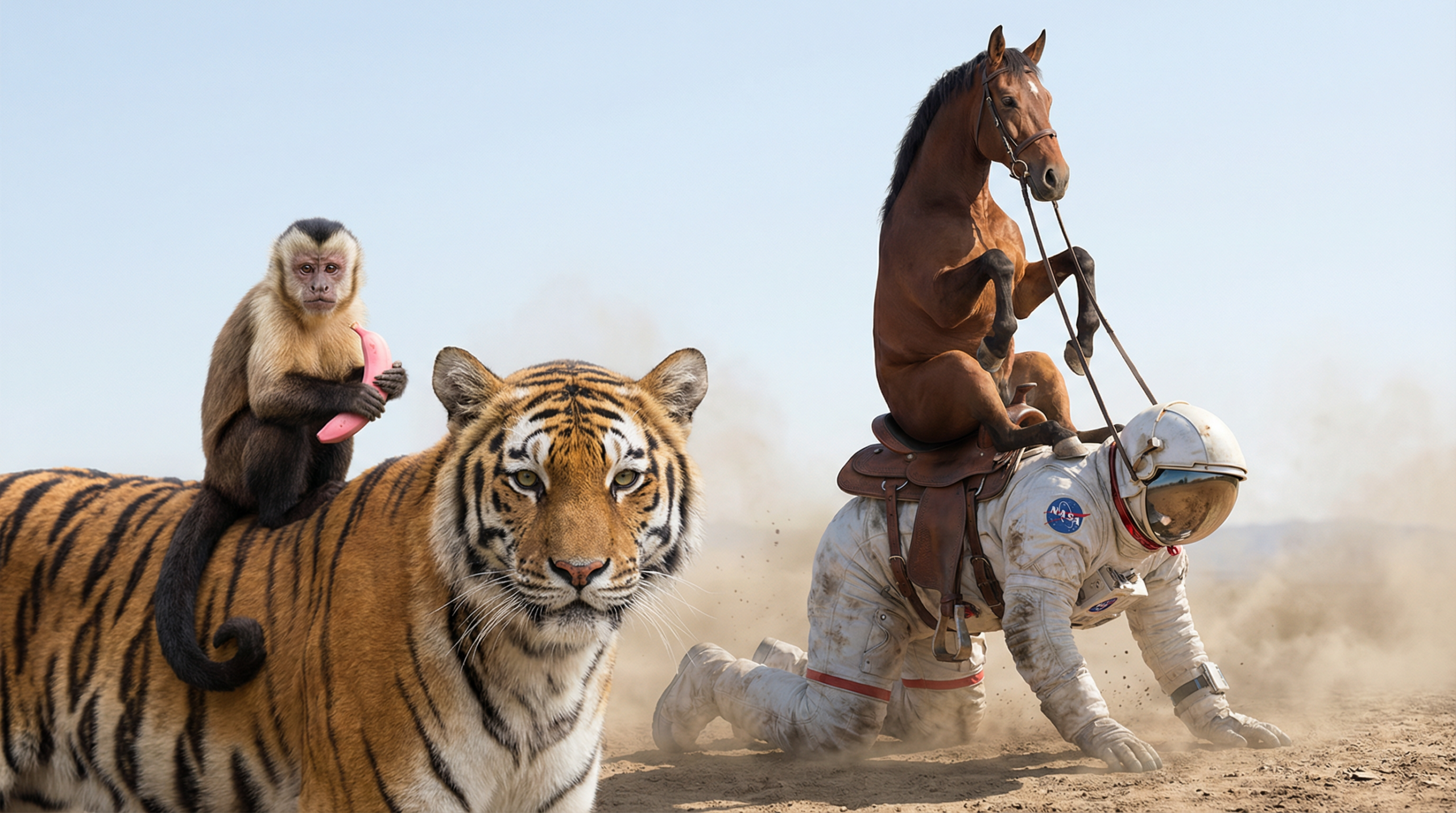In our initial testing, Nano Banana 2 is a clear step up from the original Nano Banana, which ran on Gemini 2.5 Flash, and it holds its own against the Pro version. It renders our complex benchmark prompt largely correctly, even nailing the trickiest detail: the horse is supposed to ride on the human instead of the other way around. The model has seen the normal scenario—humans riding horses—millions of times during training, while the reversed version has likely rarely or never appeared in its training data. Until now, only Nano Banana Pro could consistently pull that off. That said, the Pro output still looks more dynamic and realistic overall, while Nano Banana 2 has a slightly artificial quality to it.