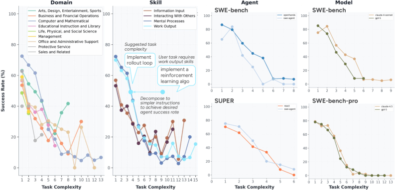 Even in software development, the most heavily represented field, the study shows success rates dropping sharply as tasks get more complex. According to the findings, agents do best on independent activities like mental processes and producing work products but struggle with finding and retrieving information and coordinating with others, even on relatively simple tasks.