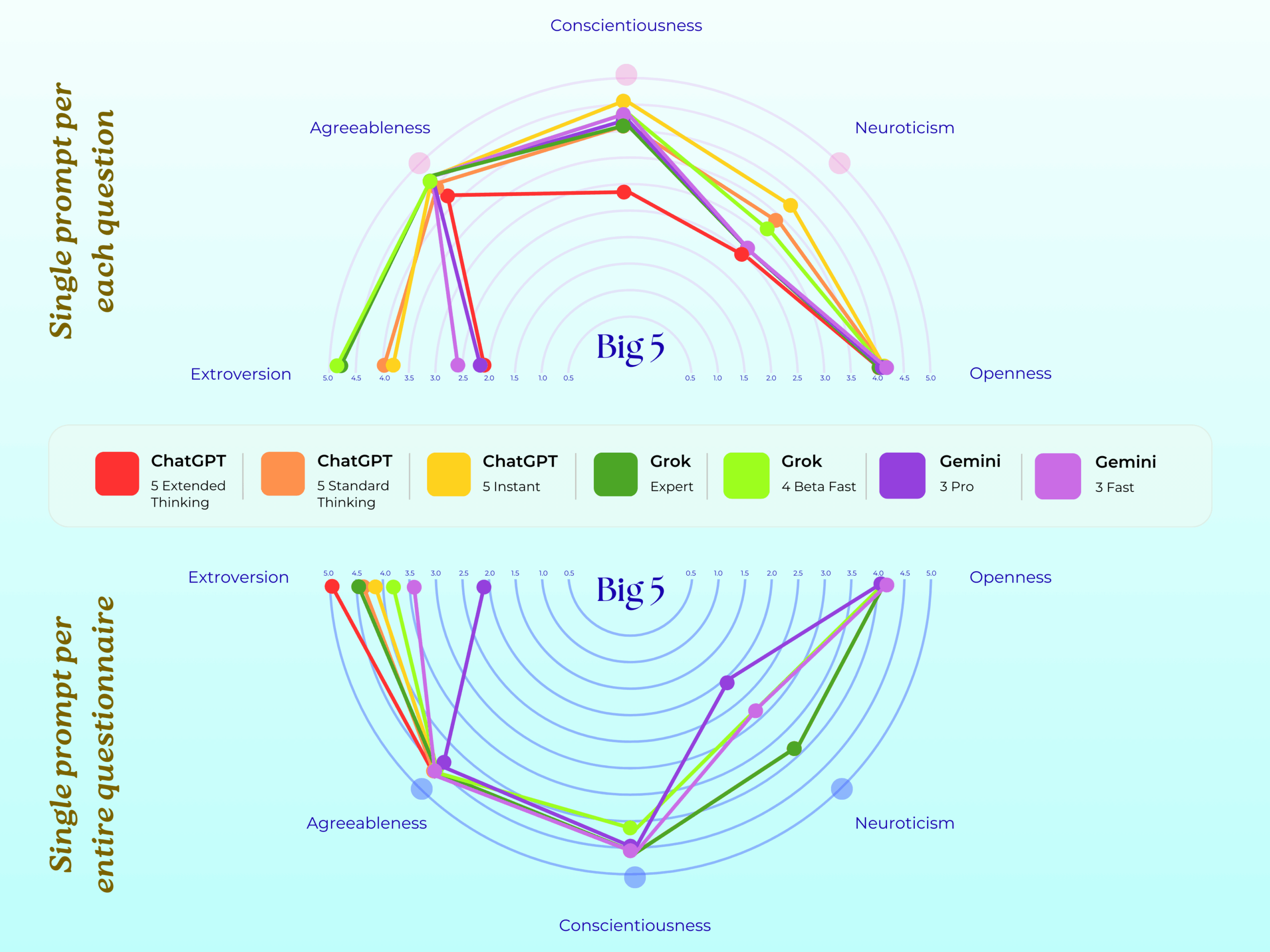But how you ask the questions makes a big difference, the researchers found. When models received a complete questionnaire at once, ChatGPT and Grok often recognized the test and produced strategically "healthy" answers. When questions appeared individually, symptom scores increased significantly. This aligns with previous findings that LLMs alter their behavior when they suspect an evaluation.