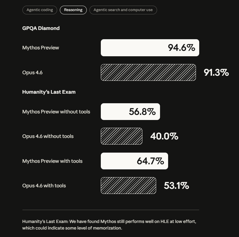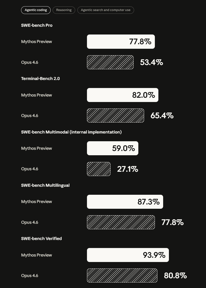 Beyond cybersecurity, the model also shows significant improvements according to the system card. On the coding benchmark SWE-bench Verified, which tests models on real-world software engineering tasks, Mythos Preview reaches 93.9 percent (Opus 4.6: 80.8%).