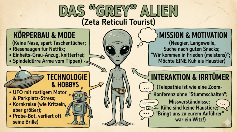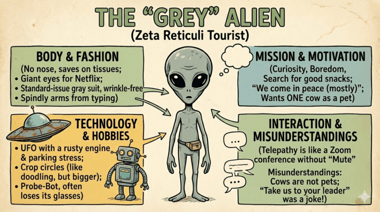 Prompt: "Generate a 16:9 infographic, humorous, about a 'Grey Alien'." | Image: Nano Banana Pro prompted by THE DECODER