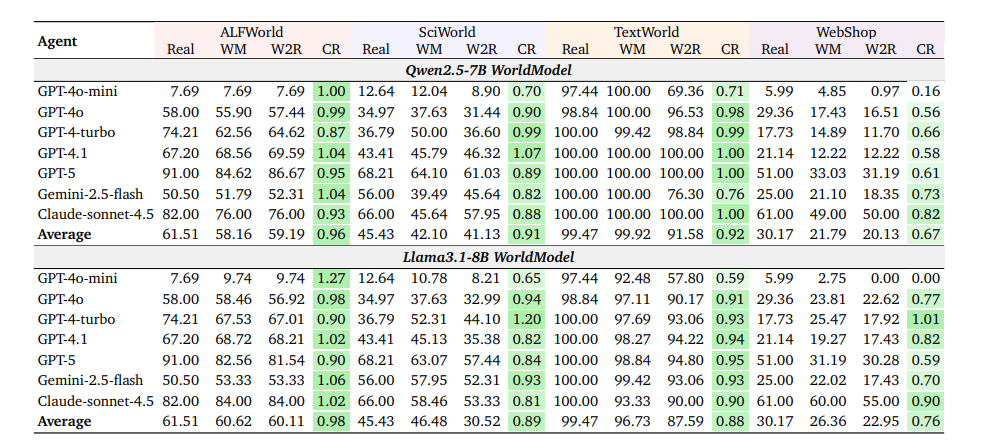The models also stayed reliable over longer action sequences. In structured domains, the consistency ratio exceeded 90 percent, meaning action sequences planned in the world model succeeded in the real environment at roughly the same rate as actions planned through direct interaction.