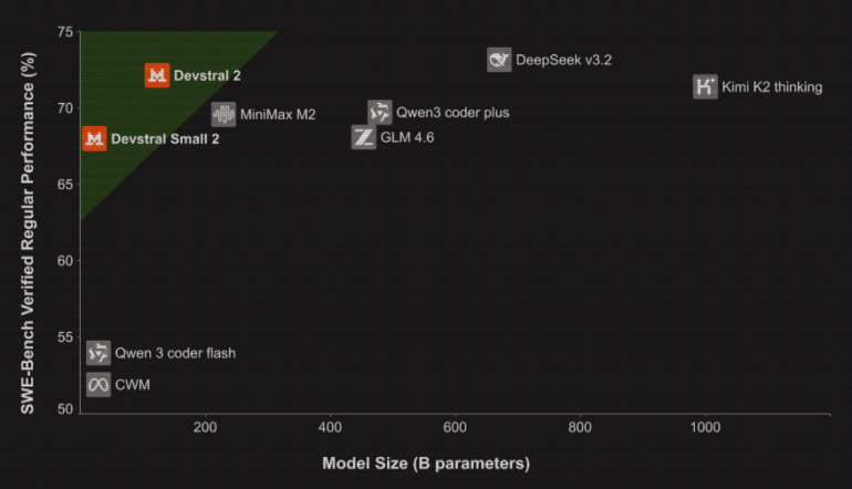 The flagship Devstral 2 features 123 billion parameters and scores 72.2 percent on the SWE-Bench Verified benchmark, outperforming many competing open models. According to Mistral AI, the model is up to seven times more cost-efficient than Claude Sonnet, and it requires four H100-class GPUs to run. Meanwhile, the smaller Devstral Small 2—coming in at 24 billion parameters—is optimized to run locally on standard hardware.