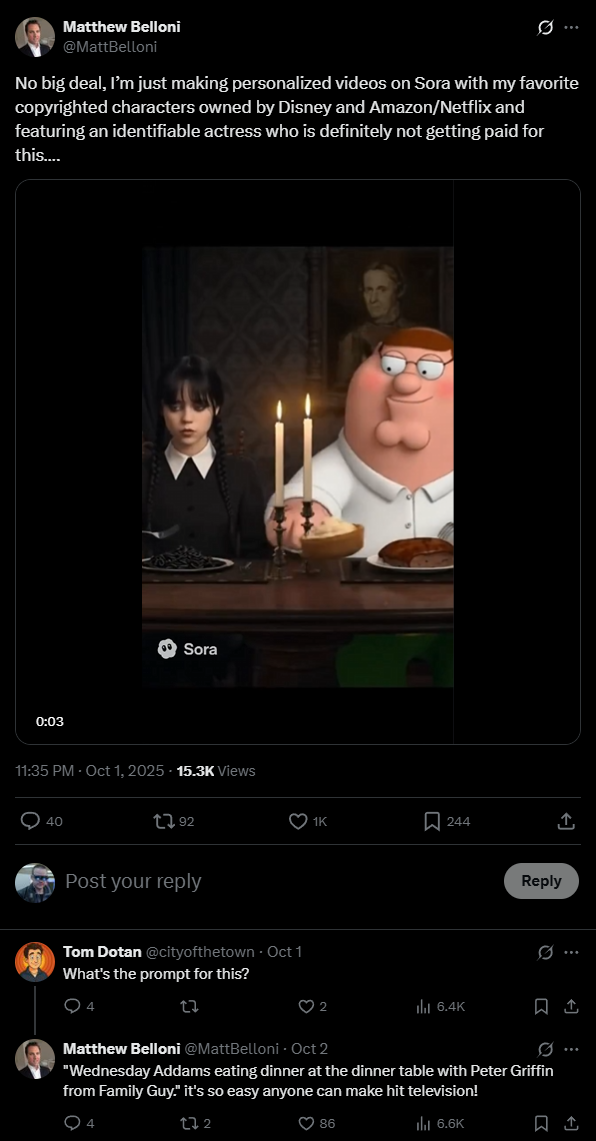 For example, the model could generate full episodes of "South Park" and plenty of other questionable content at scale. Compared to that, the earlier debate over Studio Ghibli-style images seems minor.