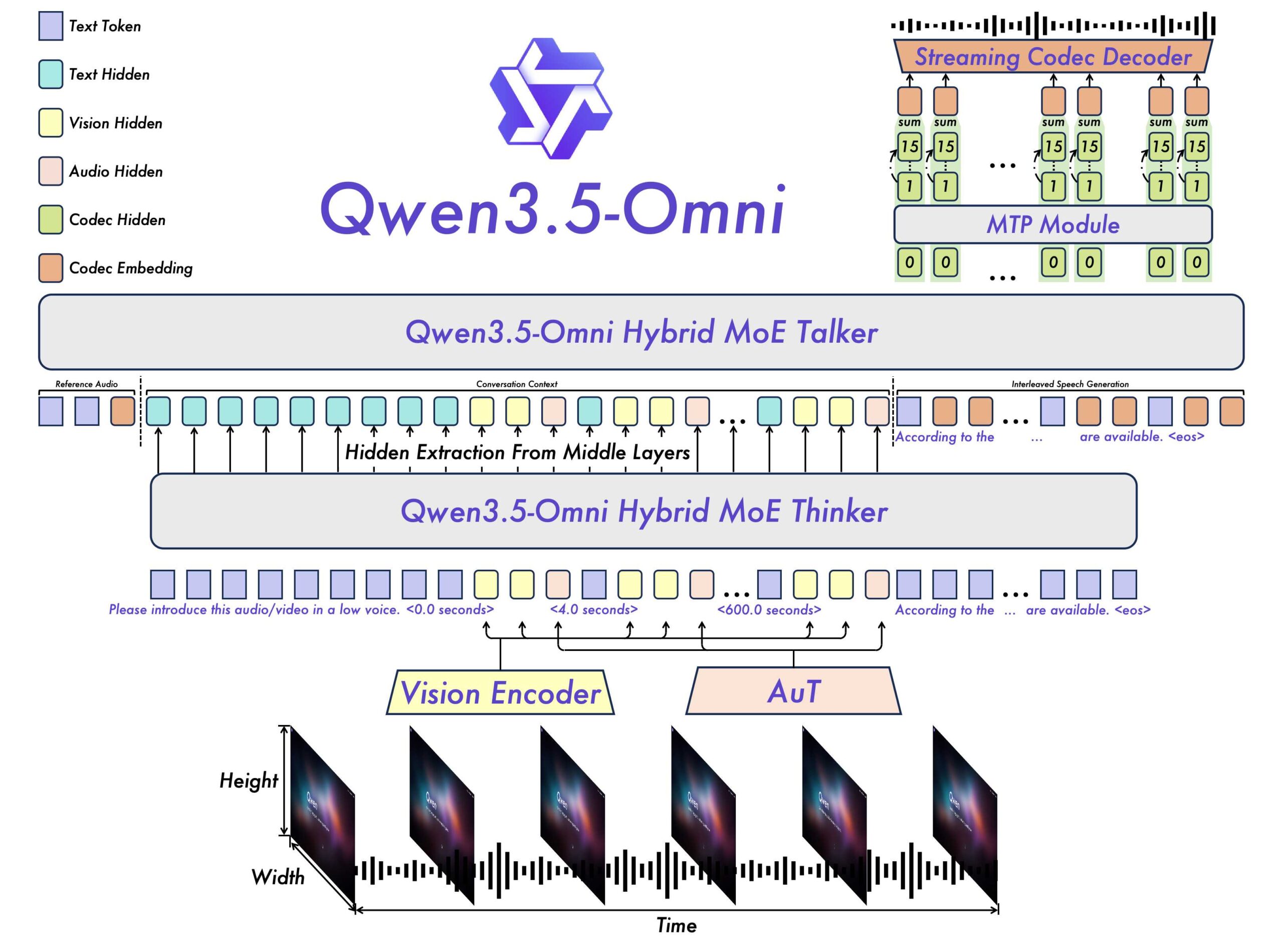 The architecture still follows a thinker-talker design. The thinker analyzes omnimodal input and generates text, while the talker turns that into contextual speech. Both components now run on a hybrid attention-MoE architecture, replacing the pure mixture-of-experts setup from the predecessor.